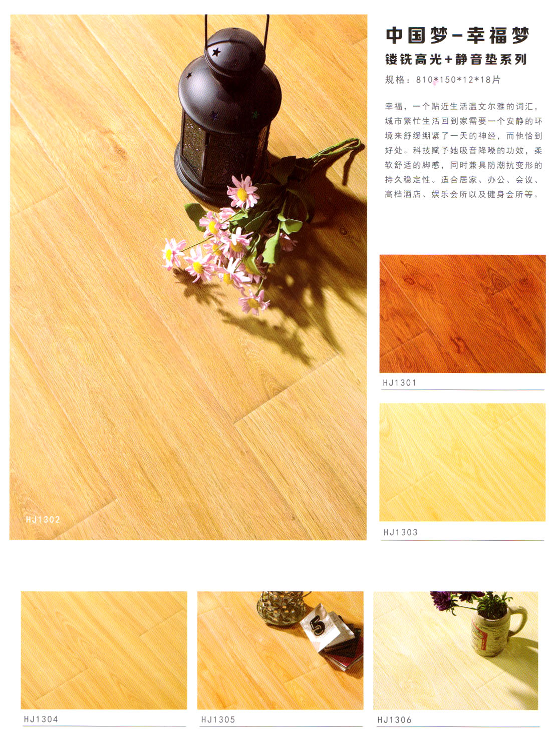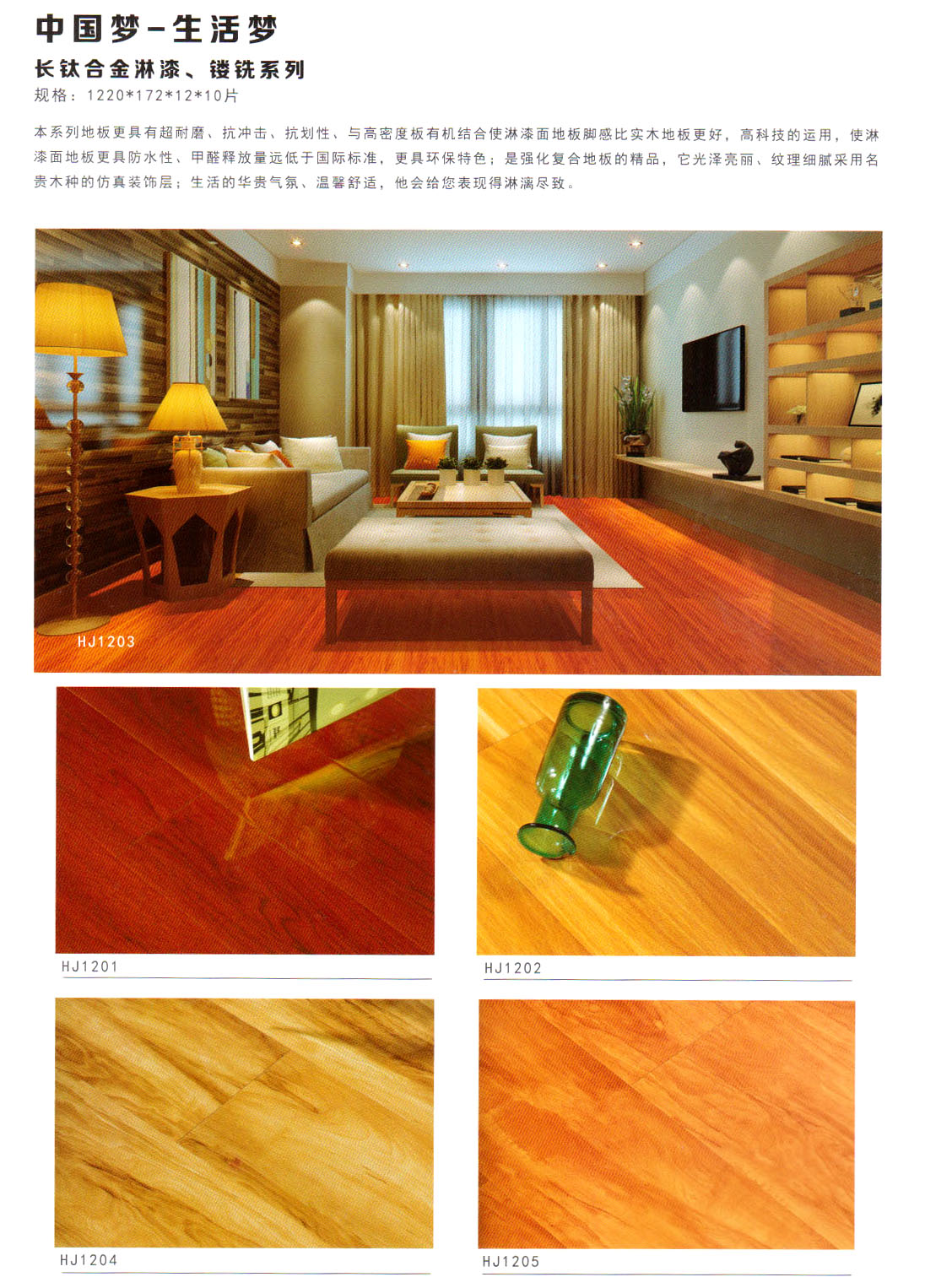 目前我們主要經(jīng)營(yíng)“惠居”、  “靈盛”牌木質(zhì)強(qiáng)化地板,現(xiàn)在已經(jīng)開(kāi)發(fā)出水晶面、羽絲面、浮雕面、立體刀砍紋、手抓紋、4v仿實(shí)木、金剛淋漆面、模壓面、橡木真木紋、防水系列等多個(gè)系列產(chǎn)品,涵蓋了市場(chǎng)上所出現(xiàn)的所有產(chǎn)品系列!