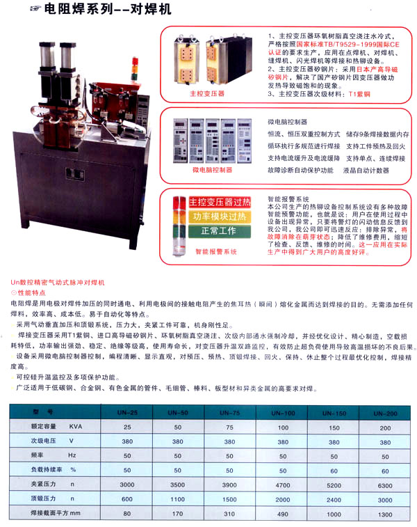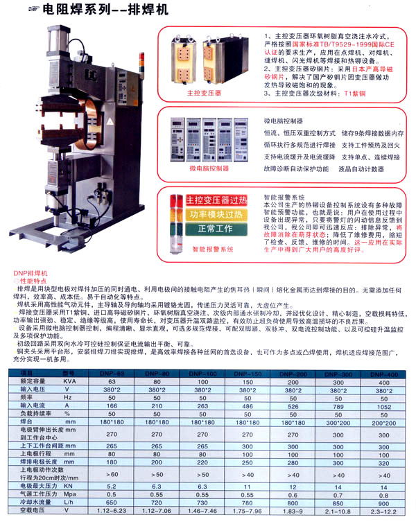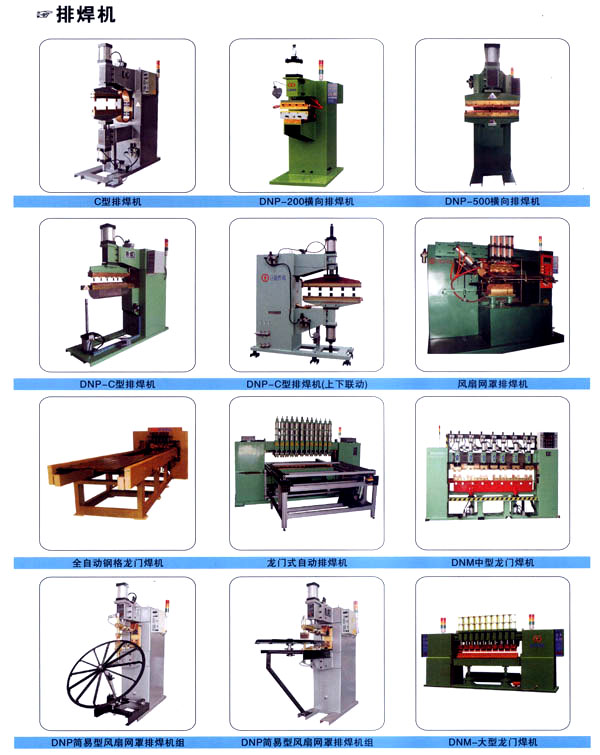 焊割主要產(chǎn)品有:點(diǎn)焊機(jī)系列、縫焊機(jī)系列、環(huán)縫焊接機(jī)床、凸焊機(jī)、排焊機(jī)、儲(chǔ)能焊機(jī)、對(duì)焊機(jī)、龍門焊機(jī)、太陽(yáng)能焊接設(shè)備和機(jī)器人焊接系統(tǒng)及外圍設(shè)備等;并為用戶設(shè)計(jì)制造專用焊接設(shè)備。