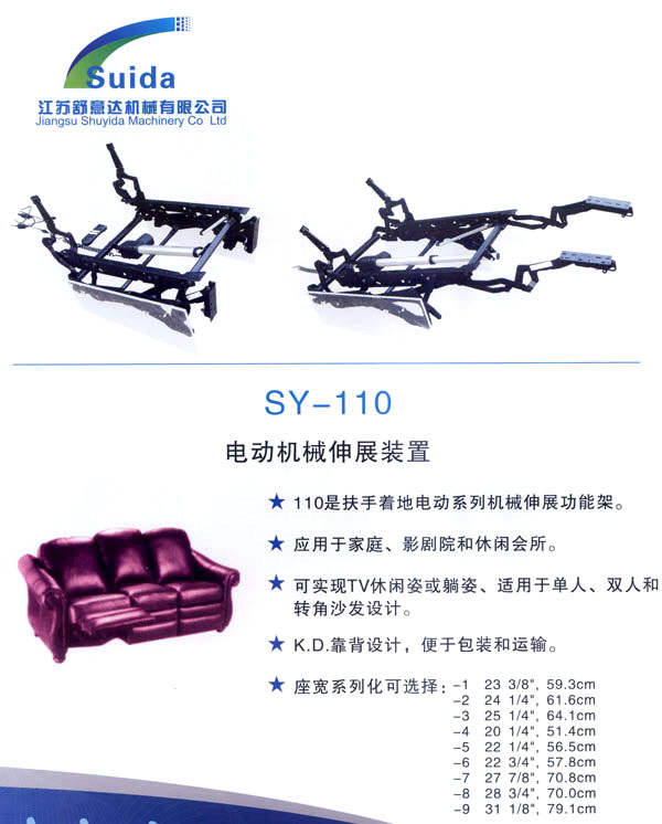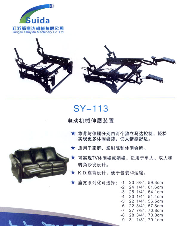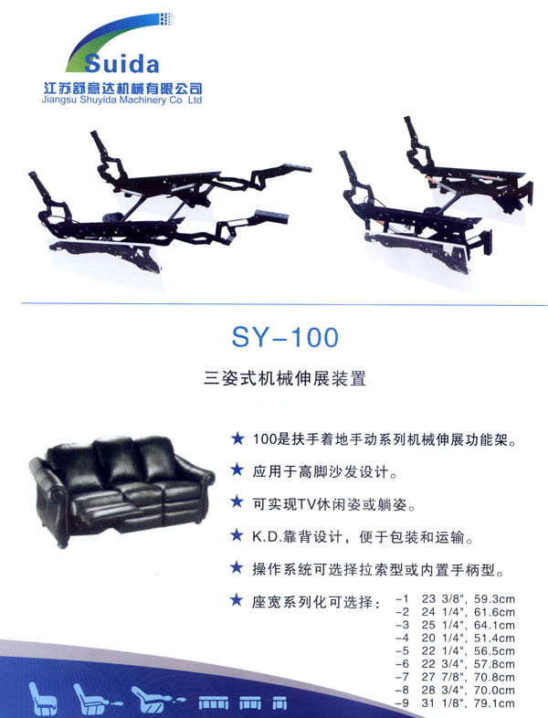 江蘇舒意達(dá)機(jī)械有限公司是一家集研發(fā)設(shè)計,生產(chǎn)制造及銷售的專業(yè)家具五金企業(yè)。公司成立于2006年,座落于風(fēng)景秀麗的江南常州,交通運(yùn)輸?shù)锰飒毢,為海?nèi)外客商的來往交流,洽談和供貨提供了諸多便利,公司占地面積28000平方米,生產(chǎn)廠房面積18000平方米,獨立的辦公樓,擁有良好的工作環(huán)境。 我們的經(jīng)營思理念:堅持以人為本,科技為先,用先進(jìn)的設(shè)備,好的工藝流程制造一流的產(chǎn)品。 我們的口號:保證以優(yōu)秀的品質(zhì)服務(wù)于客人,我們的目標(biāo):研發(fā)更多舒適的產(chǎn)品,帶來生活的享受。 公司誠邀海內(nèi)外客商前來指導(dǎo)洽談,攜手共進(jìn),共造雙贏。