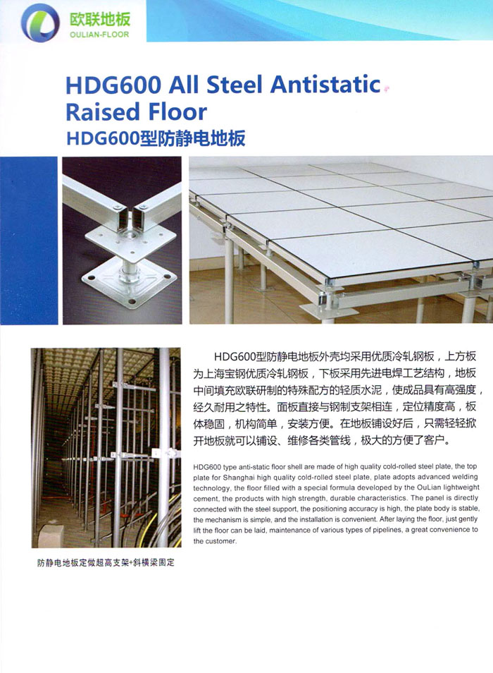 防靜電高架活動(dòng)地板、全鋼地板、陶瓷地板是計(jì)算機(jī)行業(yè)發(fā)展起來(lái)的新型鋪地材料,隔離了潮氣、靜電灰塵,最重要的是解決了綜合布線問(wèn)題,無(wú)需預(yù)埋管線,可隨時(shí)拆卸、搬移,保證了資訊設(shè)備完整的優(yōu)點(diǎn),適應(yīng)了智能化樓宇中信息自動(dòng)化技術(shù)對(duì)所處環(huán)境的特定要求,避免了廣大客戶的雙重投資,使現(xiàn)代化辦公程度更加高效,辦公場(chǎng)所更加舒適。 “歐聯(lián)”系列全鋼地板,符合國(guó)家安全要求,種類完備多樣,其中防靜電陶瓷地板、硫酸鈣地板等除具有普通瓷質(zhì)的裝飾和實(shí)用性外,其耐磨、防水、防火功能優(yōu)于其它同類產(chǎn)品,防靜電系列地板,能切合不同客戶的要求,其靈活的配置,深受客戶歡迎,不同材質(zhì)的地板結(jié)構(gòu)使設(shè)計(jì)師的設(shè)計(jì)空間比傳統(tǒng)的更加廣闊自由和善變。 公司大力發(fā)展國(guó)內(nèi)外銷售業(yè)務(wù),多次中標(biāo)國(guó)內(nèi)重點(diǎn)工程 ,例:哈爾濱醫(yī)科大學(xué)、山東大學(xué)、上海普通機(jī)場(chǎng)等。 公司將一如既往開發(fā)和制造一流的產(chǎn)品,愿與廣大有識(shí)之士合作發(fā)展,共創(chuàng)美好未來(lái)。