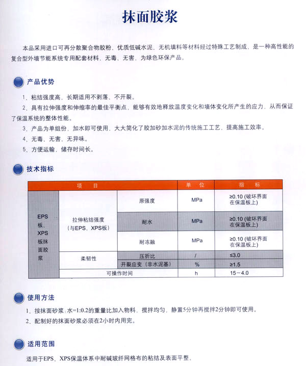 常州市福康新型建材有限公司是以研制開發(fā)、生產(chǎn)、銷售、施工、技術(shù)服務(wù)為一體的化學(xué)建筑材料的專業(yè)企業(yè),通過與歐洲著 名建筑材料公司和國(guó)內(nèi)權(quán)威科研機(jī)構(gòu)合作,并聘請(qǐng)國(guó)家級(jí)專家為技術(shù)顧問,開發(fā)出適合我國(guó)市場(chǎng)的?礒PS、XPS及聚苯顆粒外墻外保溫節(jié)能系統(tǒng)。 公司的生產(chǎn)線全部采用國(guó)內(nèi)先進(jìn)的電腦控制自動(dòng)化設(shè)備,配備了專業(yè)的實(shí)驗(yàn)中心,并且采用進(jìn)口的可再分散乳膠粉為基料,確保?低鈮ν獗毓(jié)能系統(tǒng)具有性能優(yōu)異、安全可靠,綠色環(huán)保、適用性強(qiáng)的高品質(zhì)特點(diǎn)。 公司開發(fā)的\'?低鈮ν獗叵到y(tǒng)\'被列為江蘇省科技成果推廣項(xiàng)目。整個(gè)生產(chǎn)流程依照質(zhì)量體系的要求,實(shí)行嚴(yán)格的監(jiān)控和檢測(cè),為生產(chǎn)優(yōu)質(zhì)產(chǎn)品提供保證。高品質(zhì)的?低鈮ν獗叵到y(tǒng),提供從熱工設(shè)計(jì)、產(chǎn)品開發(fā)、生產(chǎn)銷售及工程施工全程服務(wù)的一體化解決方案。 公司本著“綠色環(huán)保、節(jié)約能源、造福人類”的理念。用我們一流的產(chǎn)品和優(yōu)秀的服務(wù),打造出一個(gè)個(gè)節(jié)能康居示范工程,為人類營(yíng)造出舒適健康的居住環(huán)境。我們?cè)笧橹袊?guó)節(jié)能事業(yè)的發(fā)展積極努力,更上一層樓。 公司組建高效的生產(chǎn)經(jīng)營(yíng)管理模式,設(shè)立專業(yè)技術(shù)服務(wù)機(jī)構(gòu)。配備售后的優(yōu)質(zhì)服務(wù)。實(shí)行原材料、運(yùn)輸、安裝一條龍服務(wù)。經(jīng)本公司施工之后,貴公司可以直接批涂料、裝門窗、貼瓷磚,保證絕無任何質(zhì)量問題。