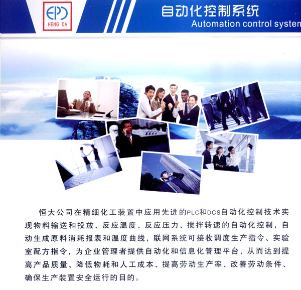 恒大公司掌握膠粘劑、樹脂、涂料和油墨等精細(xì)化工核心工藝技術(shù),擁有強(qiáng)大的化工成套生產(chǎn)設(shè)備提供能力和設(shè)備制造能力,能夠?yàn)榭蛻籼峁⿵恼麖S規(guī)劃設(shè)計(jì)、生產(chǎn)工藝流程設(shè)計(jì)、設(shè)備選型制造、管道設(shè)計(jì)安裝、自動(dòng)化控制系統(tǒng)開發(fā)調(diào)試以及整廠總承包交鑰匙工程服務(wù)。