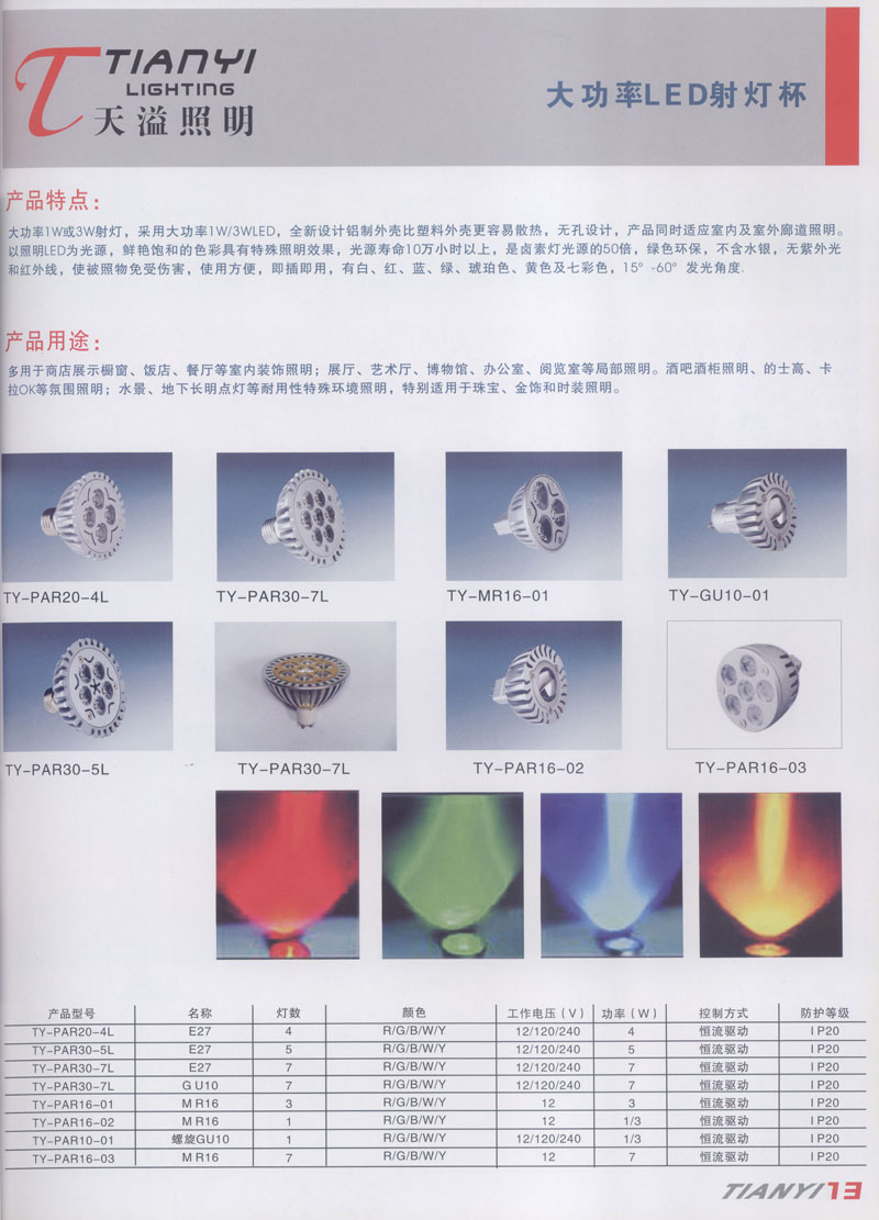 天溢照明是中國領(lǐng)先的專業(yè)從事LED廣告照明裝飾燈具設(shè)計、系統(tǒng)開發(fā)、燈具制造、工程服務(wù)一體的專業(yè)型公司,本公司產(chǎn)品已廣泛應(yīng)用于全國大多數(shù)城市夜景亮化景觀照明、酒店休閑娛樂夜場夢幻燈光、戶內(nèi)外廣告宣傳、建筑及室內(nèi)照明以及家居裝飾等場合。