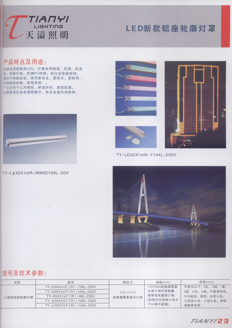 天溢照明是中國(guó)領(lǐng)先的專業(yè)從事LED廣告照明裝飾燈具設(shè)計(jì)、系統(tǒng)開發(fā)、燈具制造、工程服務(wù)一體的專業(yè)型公司,本公司產(chǎn)品已廣泛應(yīng)用于全國(guó)大多數(shù)城市夜景亮化景觀照明、酒店休閑娛樂夜場(chǎng)夢(mèng)幻燈光、戶內(nèi)外廣告宣傳、建筑及室內(nèi)照明以及家居裝飾等場(chǎng)合。 本公司產(chǎn)品涵蓋景觀裝飾照明、商用照明、居家照明、信息廣告顯示等領(lǐng)域,我們將性能可靠與適中價(jià)格的LED全系列產(chǎn)品帶到世界各個(gè)、角落。