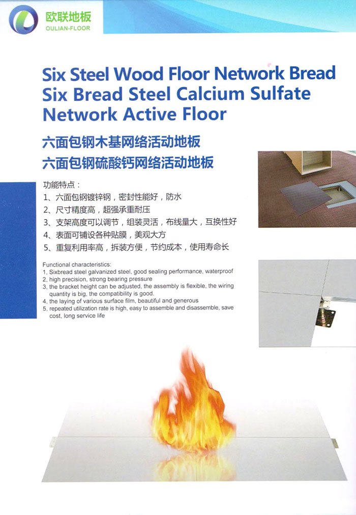 防靜電高架活動地板、全鋼地板、陶瓷地板是計算機行業(yè)發(fā)展起來的新型鋪地材料,隔離了潮氣、靜電灰塵,最重要的是解決了綜合布線問題,無需預(yù)埋管線,可隨時拆卸、搬移,保證了資訊設(shè)備完整的優(yōu)點,適應(yīng)了智能化樓宇中信息自動化技術(shù)對所處環(huán)境的特定要求,避免了廣大客戶的雙重投資,使現(xiàn)代化辦公程度更加高效,辦公場所更加舒適。 “歐聯(lián)”系列全鋼地板,符合國家安全要求,種類完備多樣,其中防靜電陶瓷地板、硫酸鈣地板等除具有普通瓷質(zhì)的裝飾和實用性外,其耐磨、防水、防火功能優(yōu)于其它同類產(chǎn)品,防靜電系列地板,能切合不同客戶的要求,其靈活的配置,深受客戶歡迎,不同材質(zhì)的地板結(jié)構(gòu)使設(shè)計師的設(shè)計空間比傳統(tǒng)的更加廣闊自由和善變。 公司大力發(fā)展國內(nèi)外銷售業(yè)務(wù),多次中標(biāo)國內(nèi)重點工程 ,例:哈爾濱醫(yī)科大學(xué)、山東大學(xué)、上海普通機場等。 公司將一如既往開發(fā)和制造一流的產(chǎn)品,愿與廣大有識之士合作發(fā)展,共創(chuàng)美好未來。